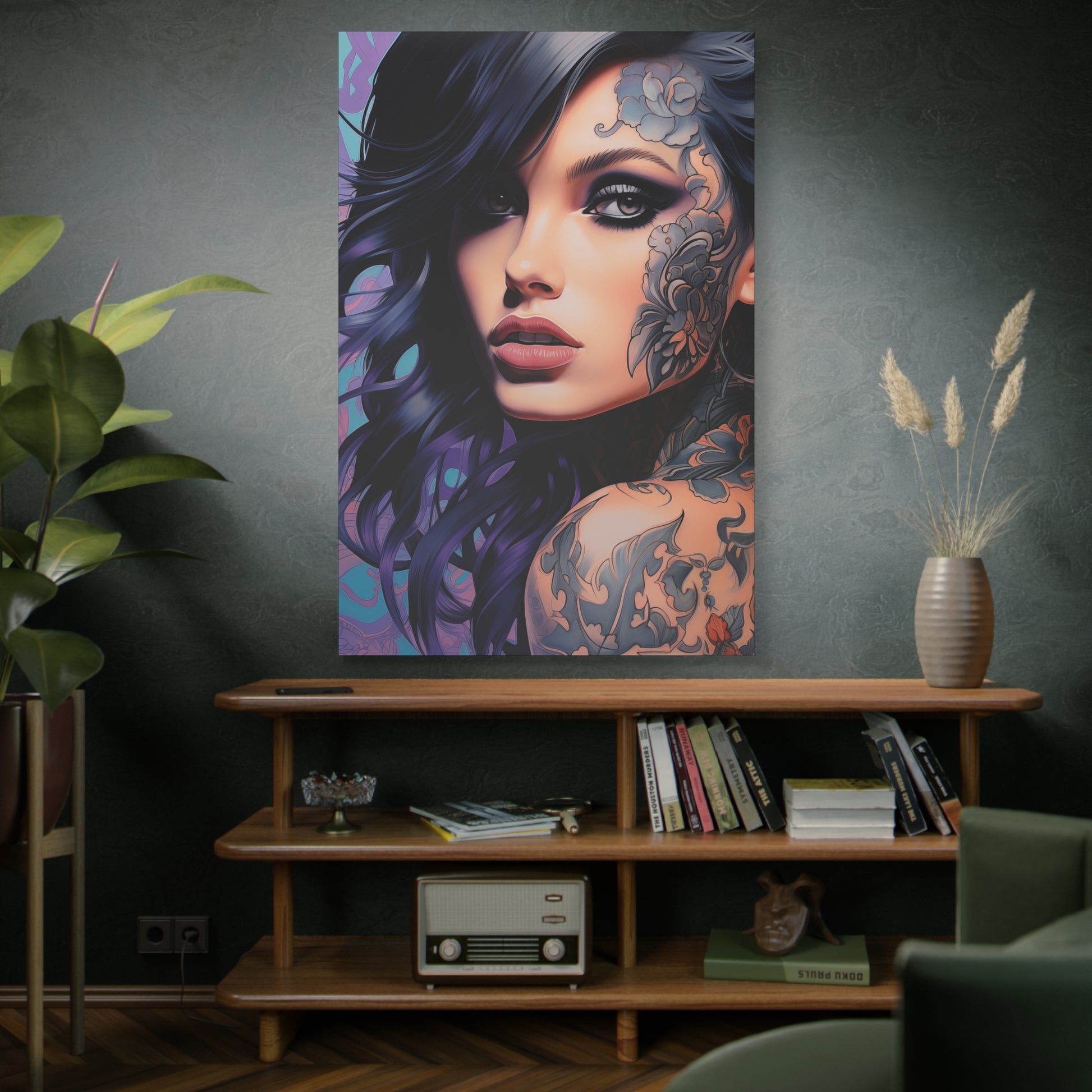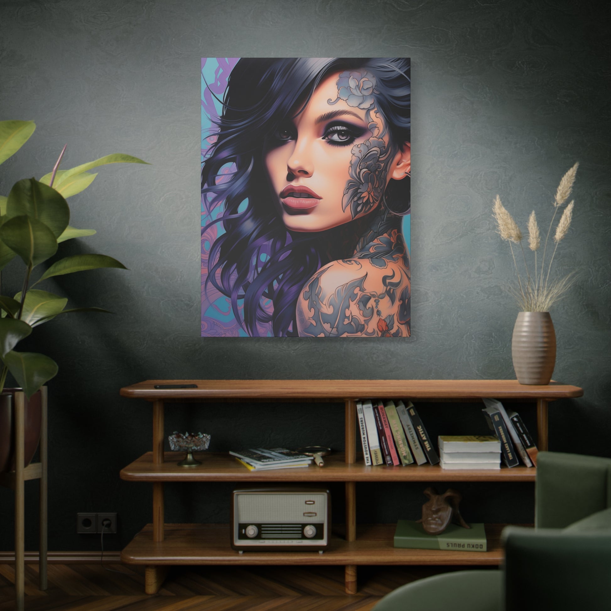 Gallery Wrapped Canvas, Edgy Tattooed Beauty, Urban Pop Art Canvas – Dominique