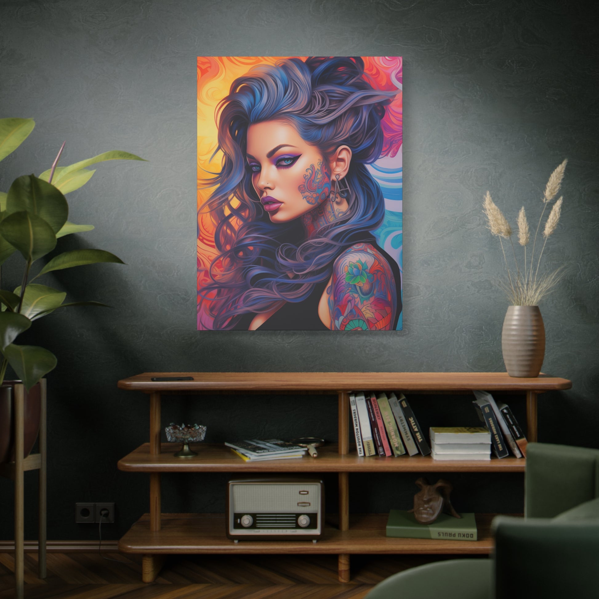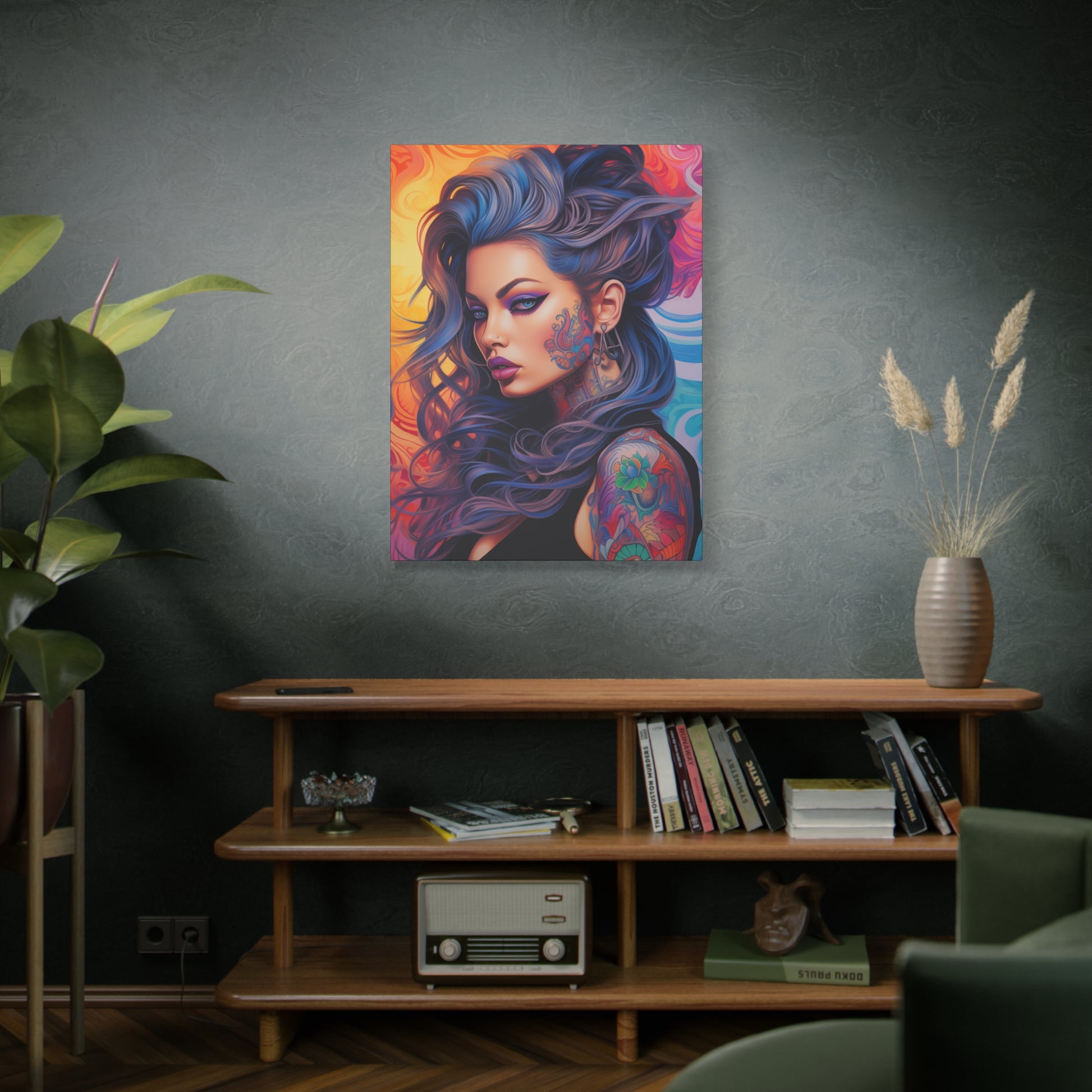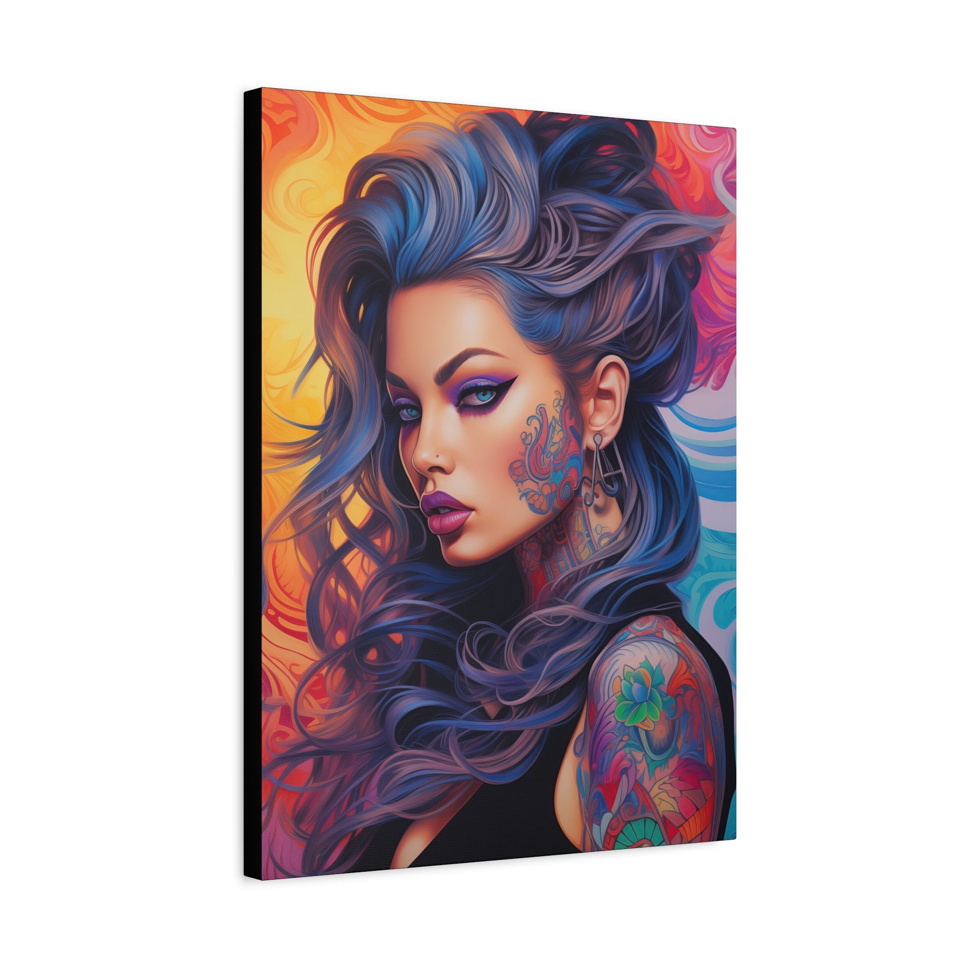 Gallery Wrapped Canvas, Edgy Tattooed Beauty, Urban Pop Art Canvas – Faye