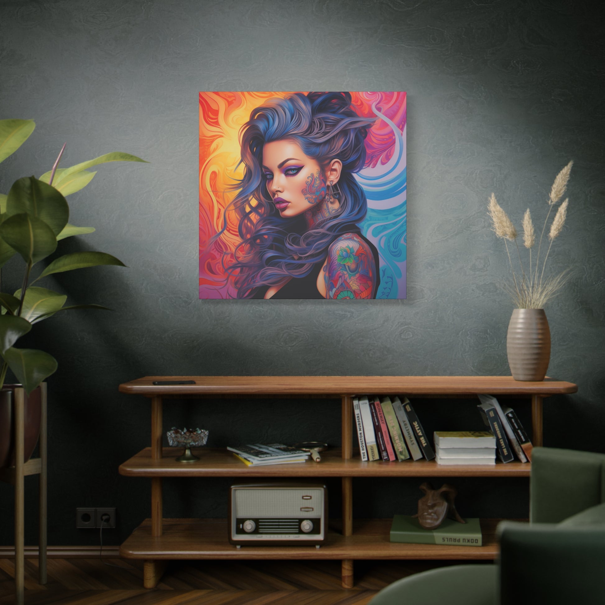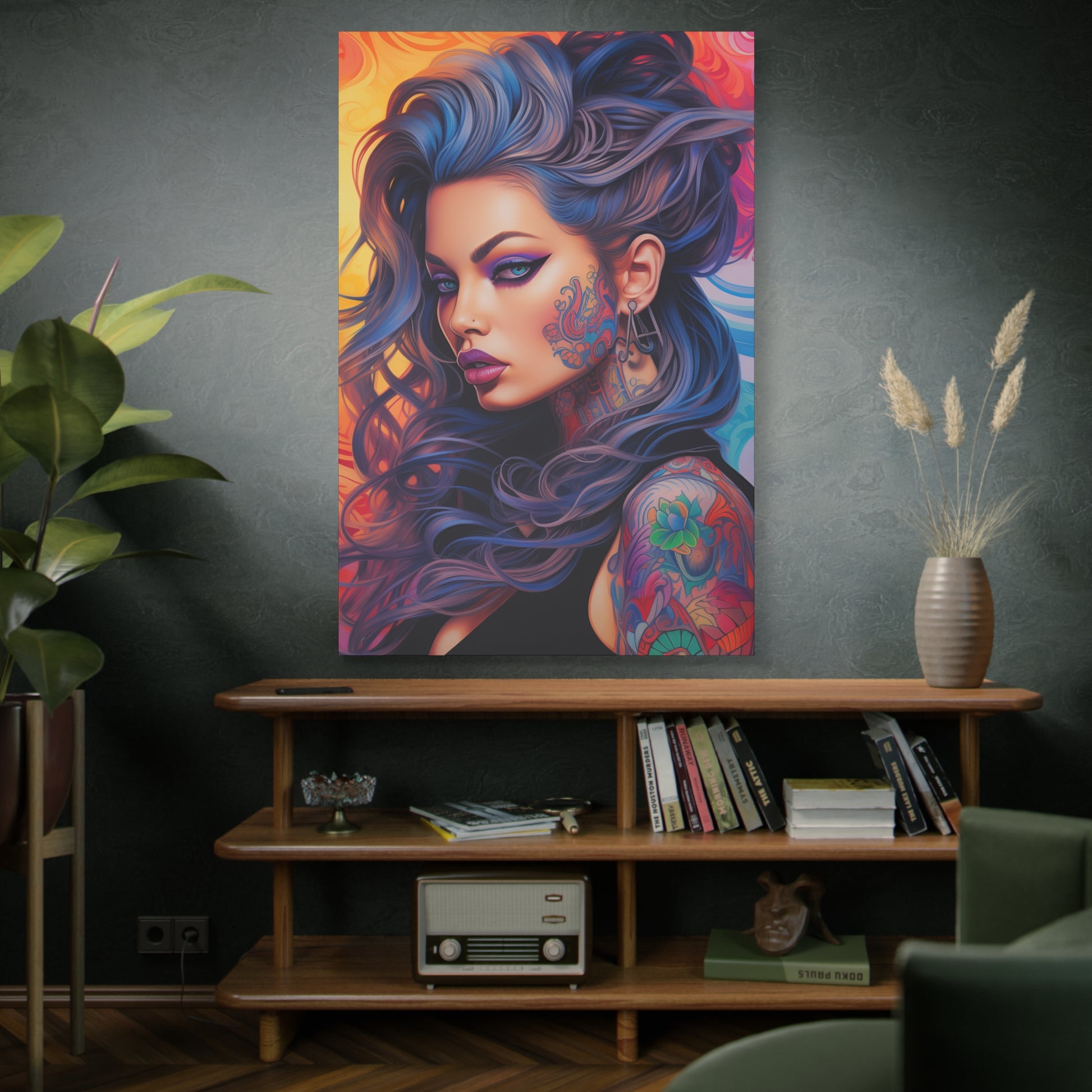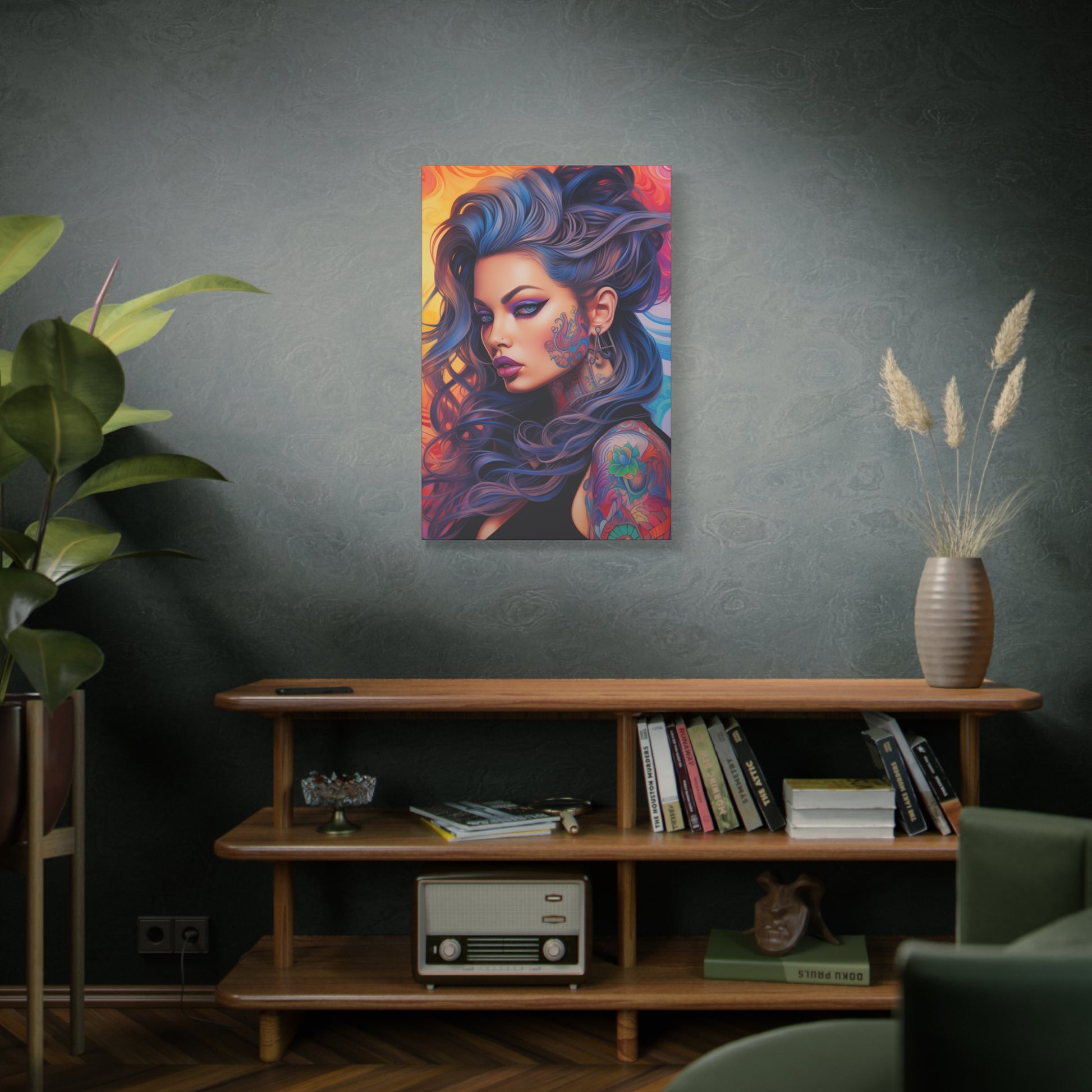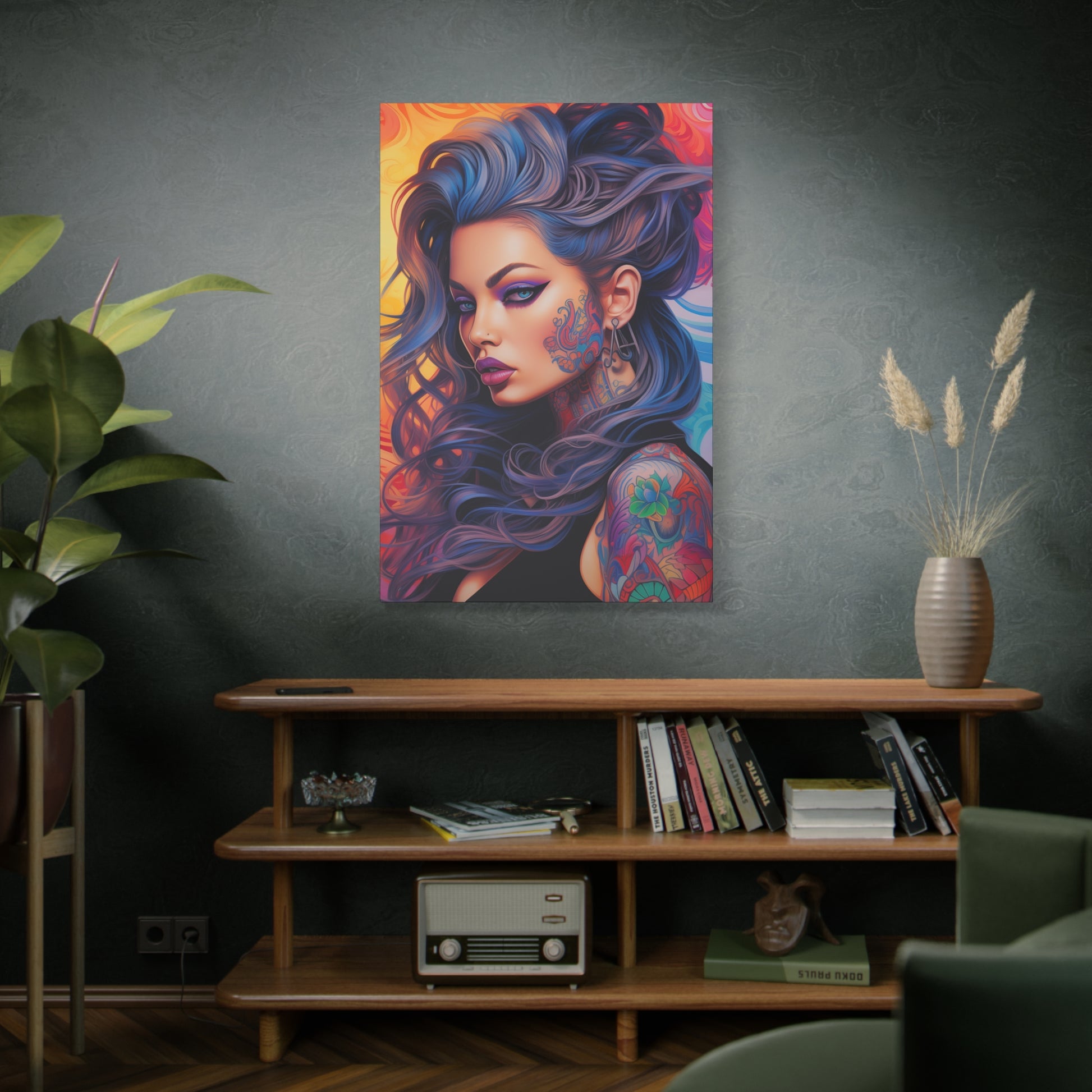 Gallery Wrapped Canvas, Edgy Tattooed Beauty, Urban Pop Art Canvas – Faye