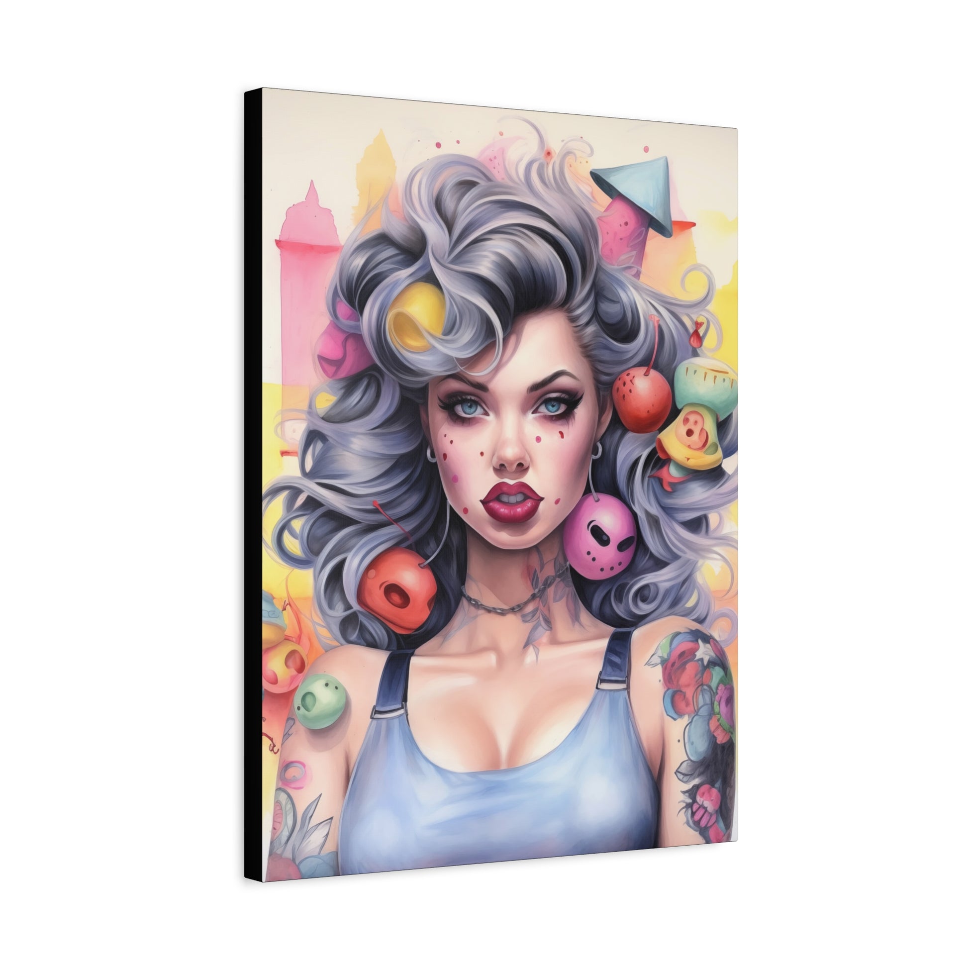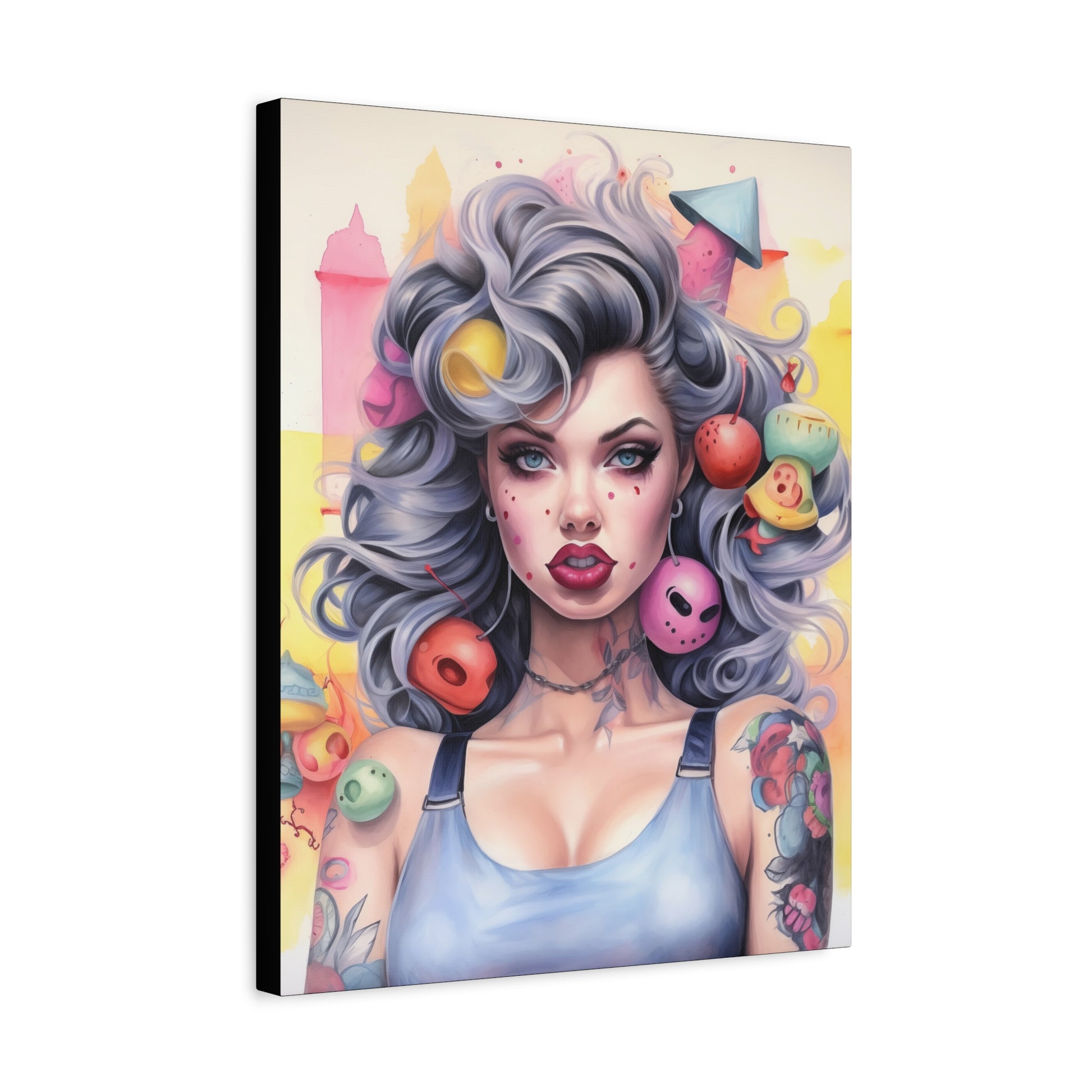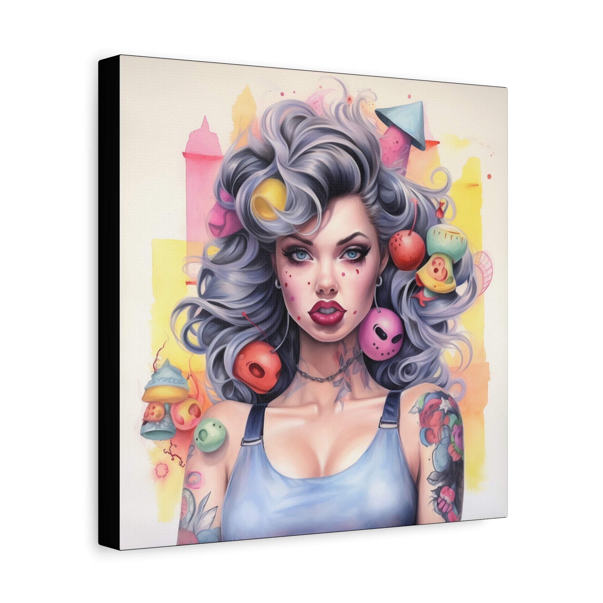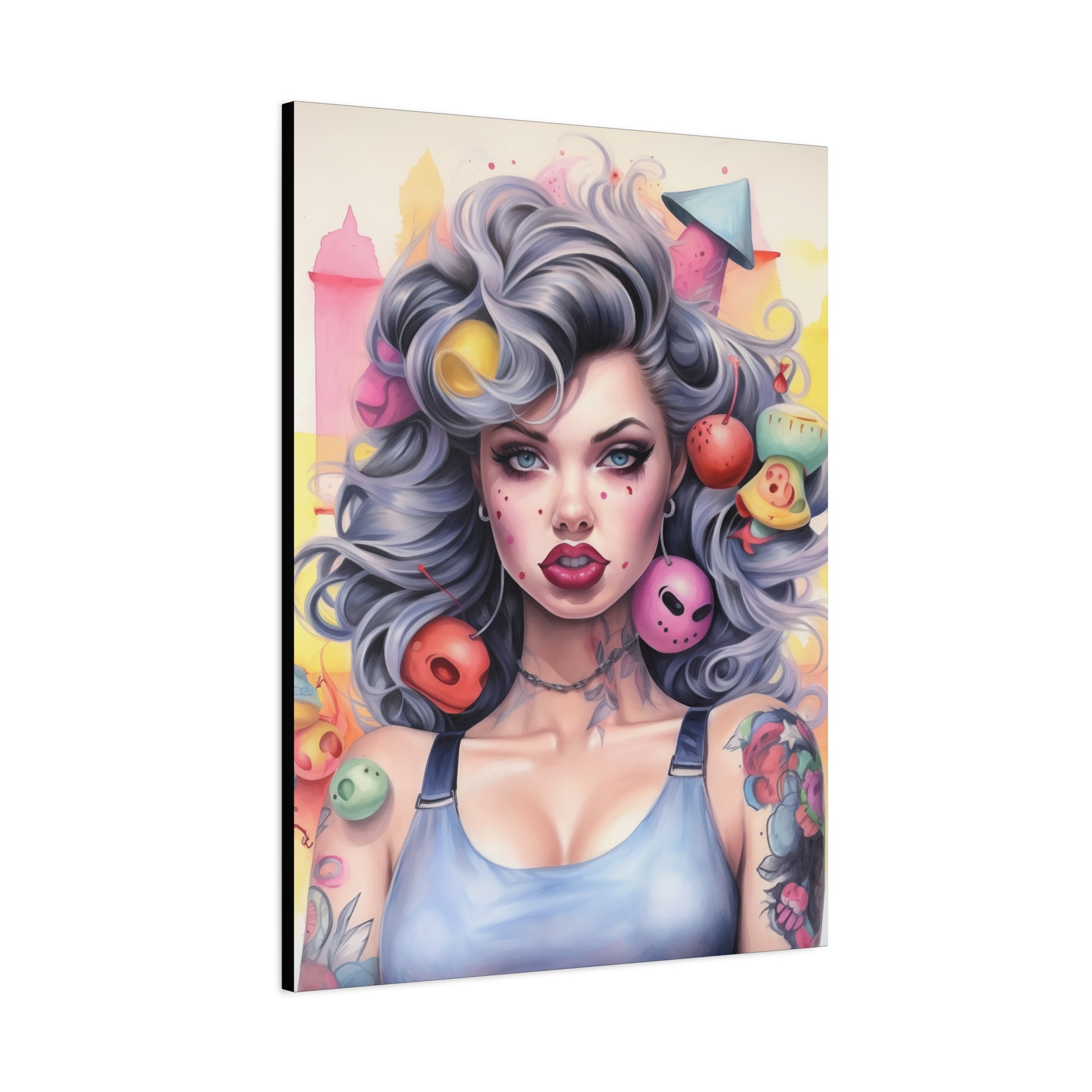 Gallery Wrapped Canvas, Tattooed Beauty, Femme Doll Pop Art Canvas – Lila