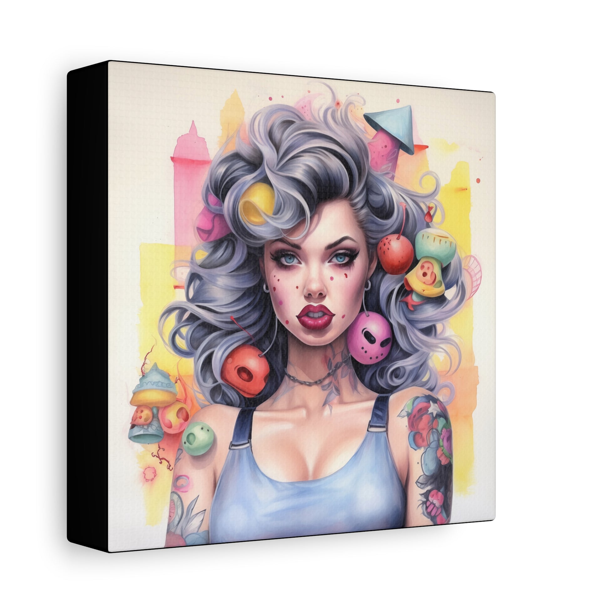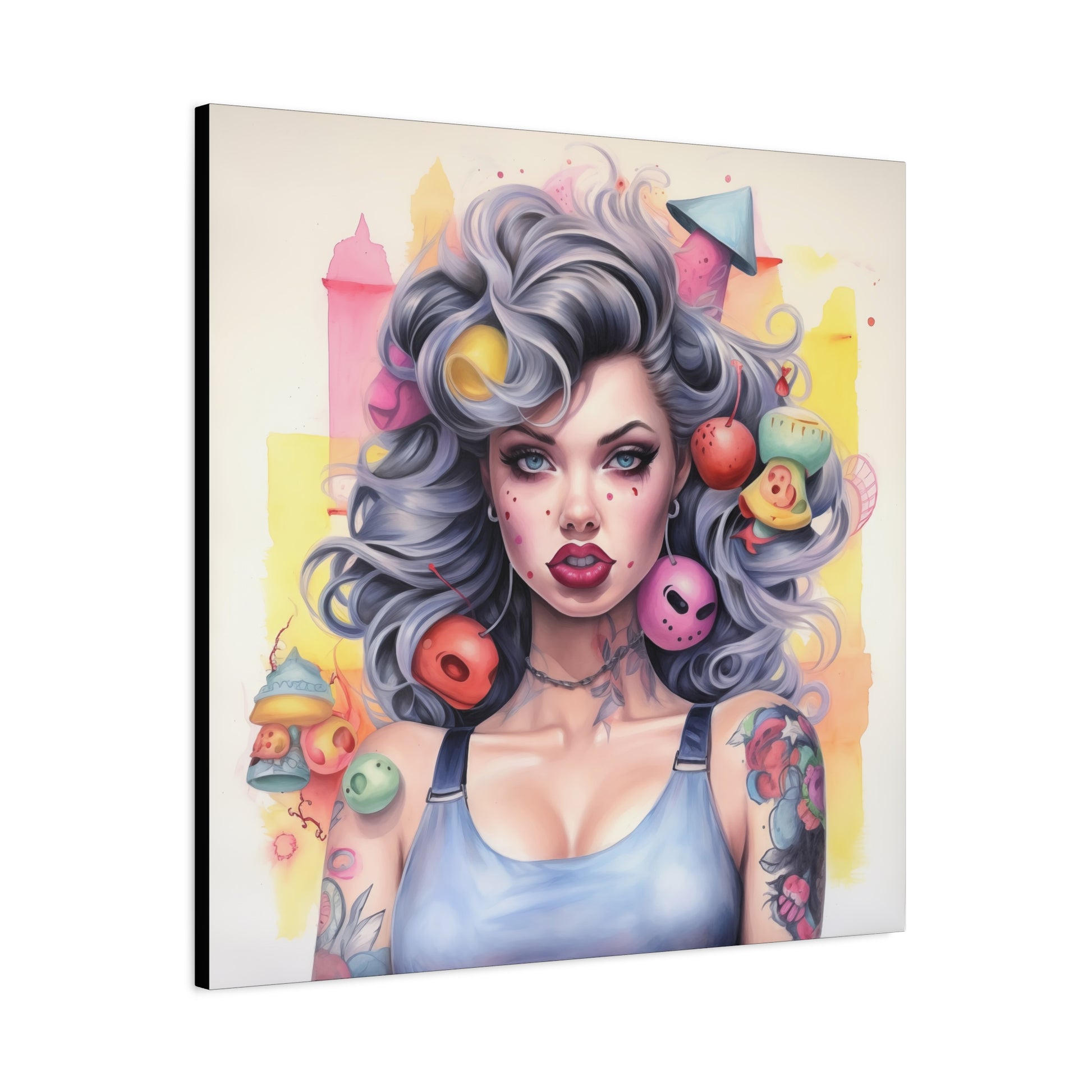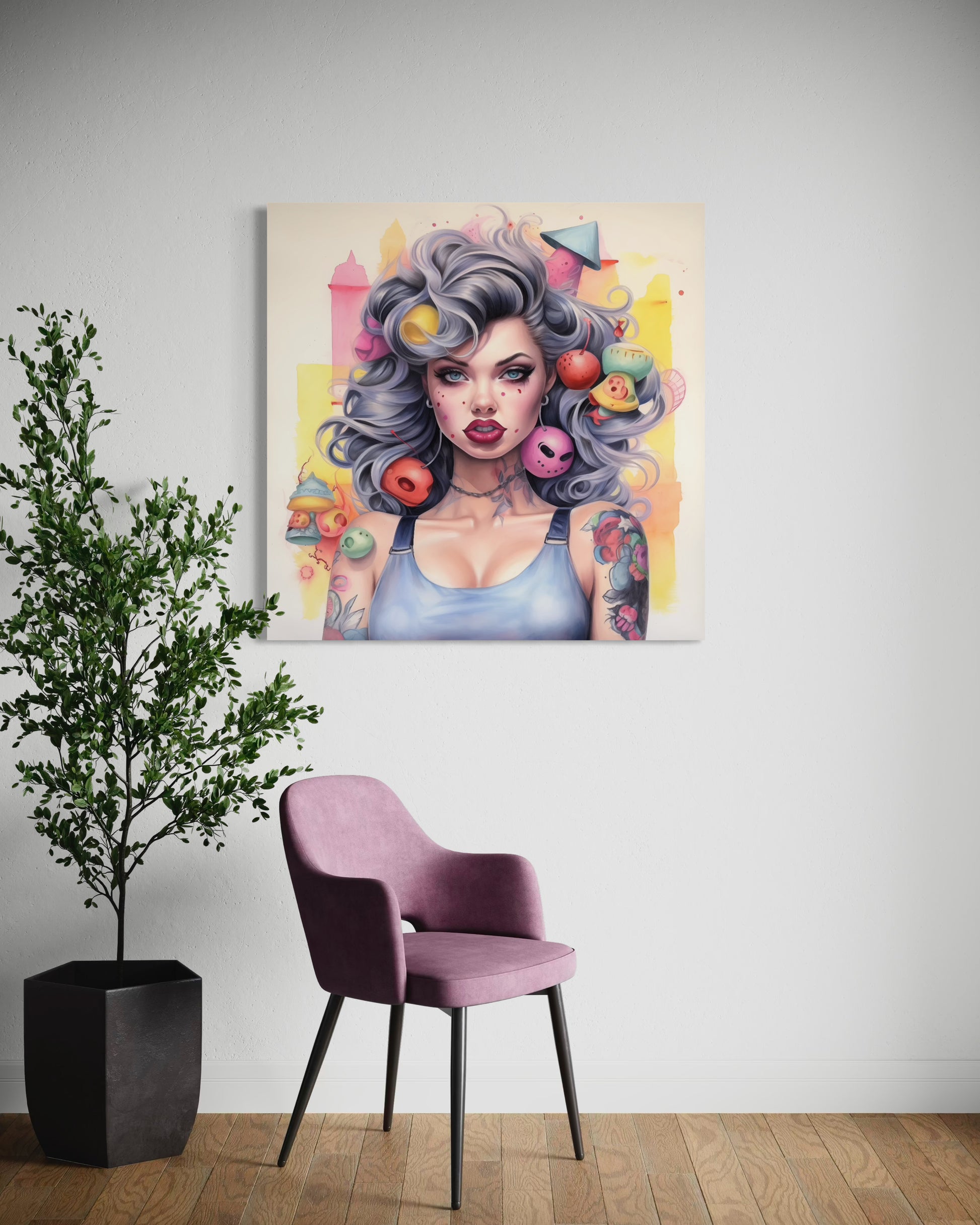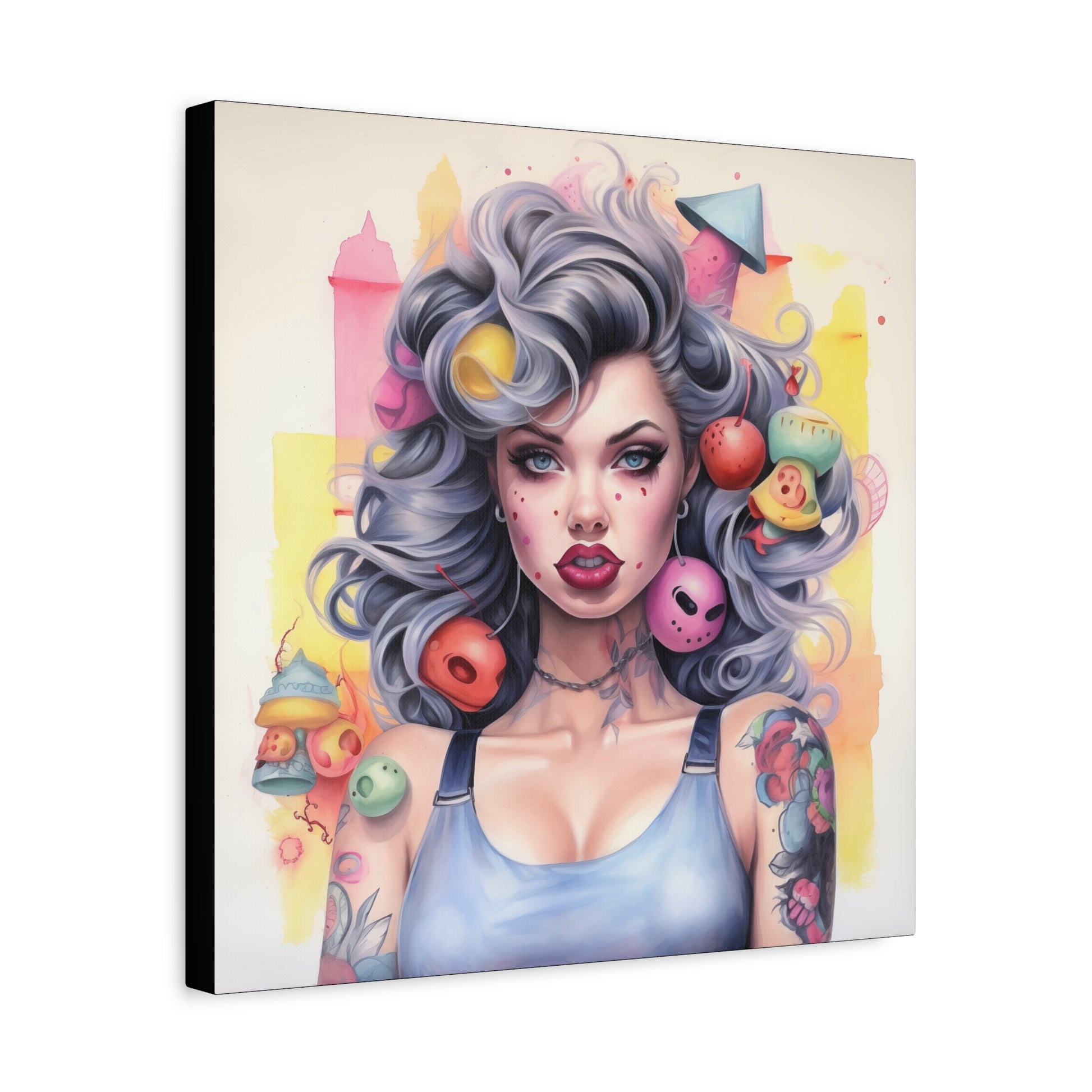 Gallery Wrapped Canvas, Tattooed Beauty, Femme Doll Pop Art Canvas – Lila