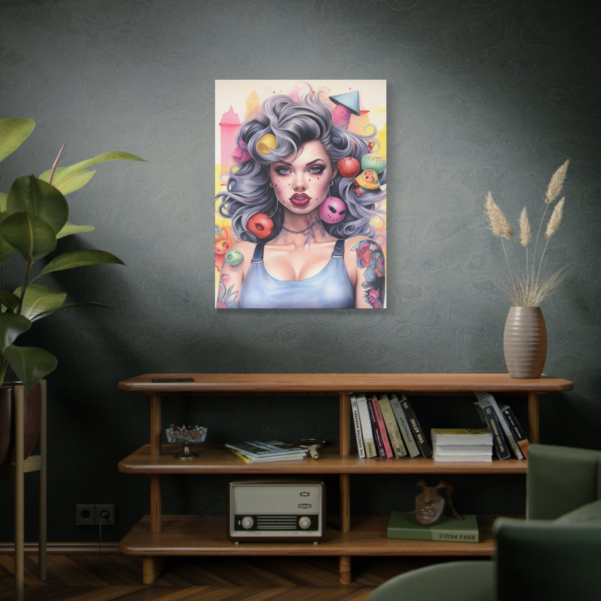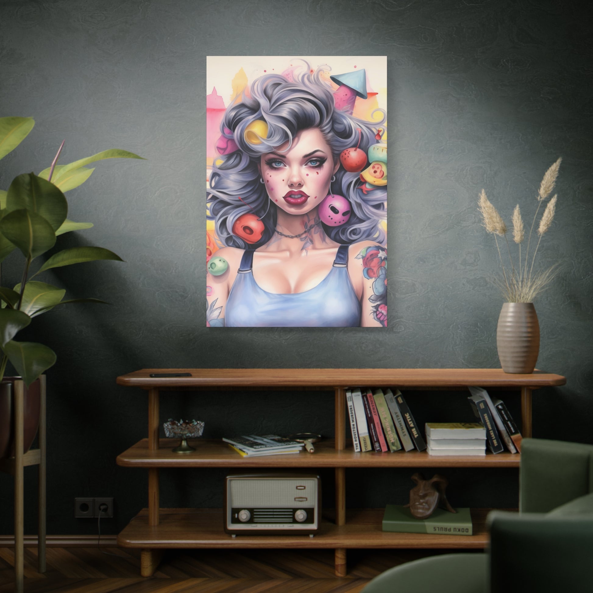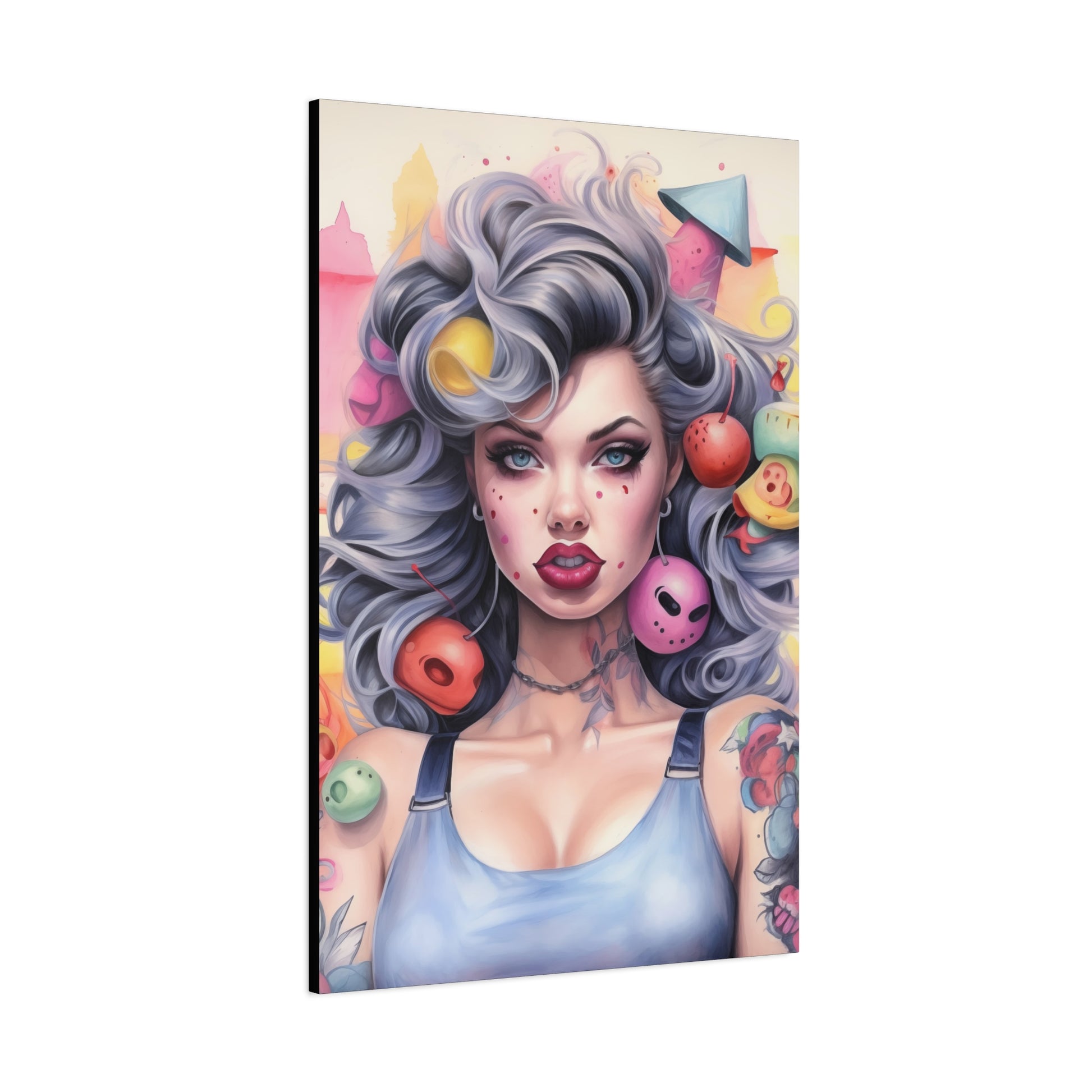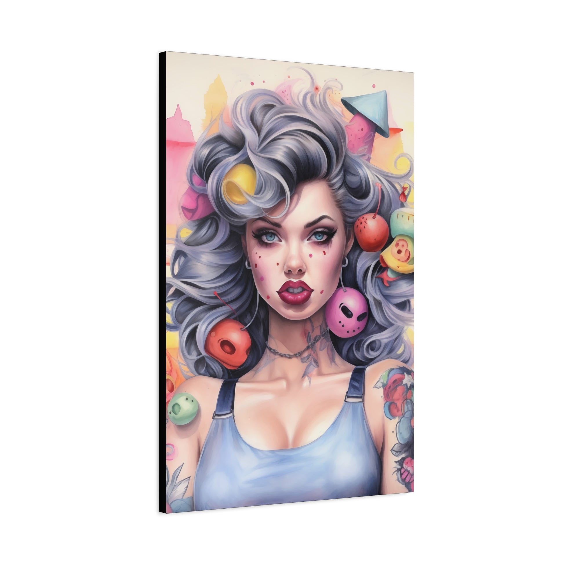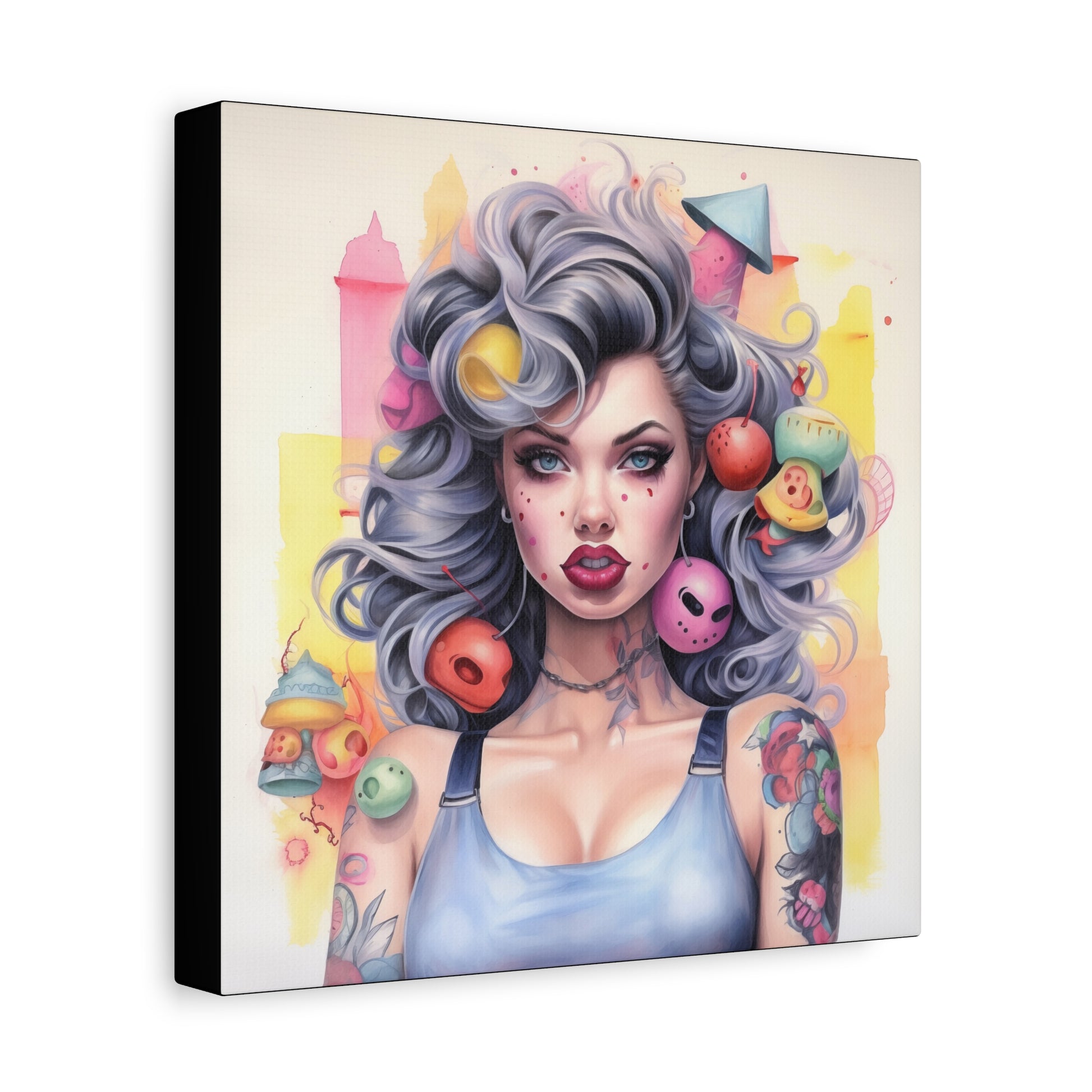 Gallery Wrapped Canvas, Tattooed Beauty, Femme Doll Pop Art Canvas – Lila