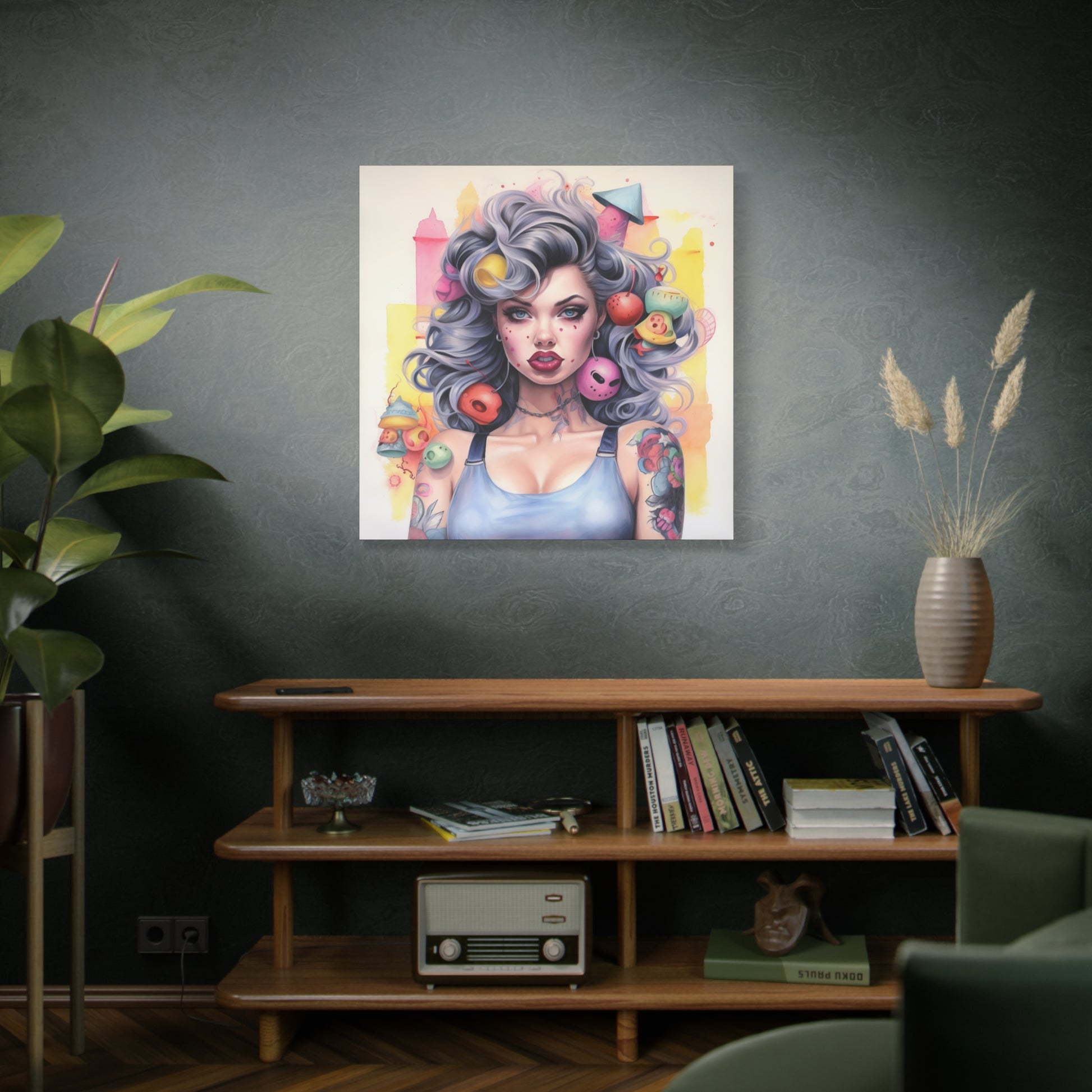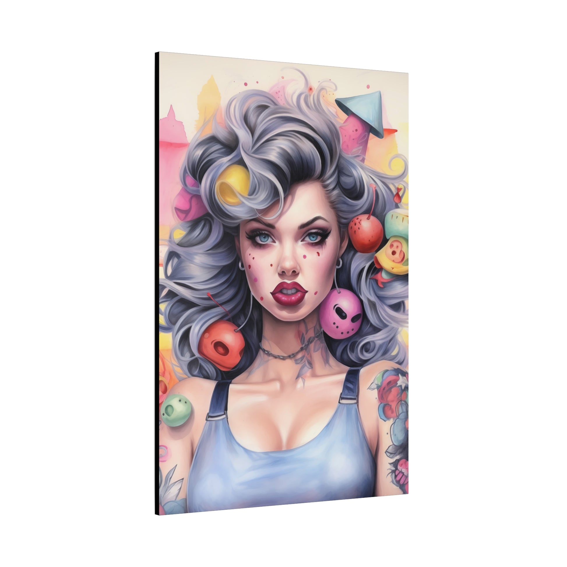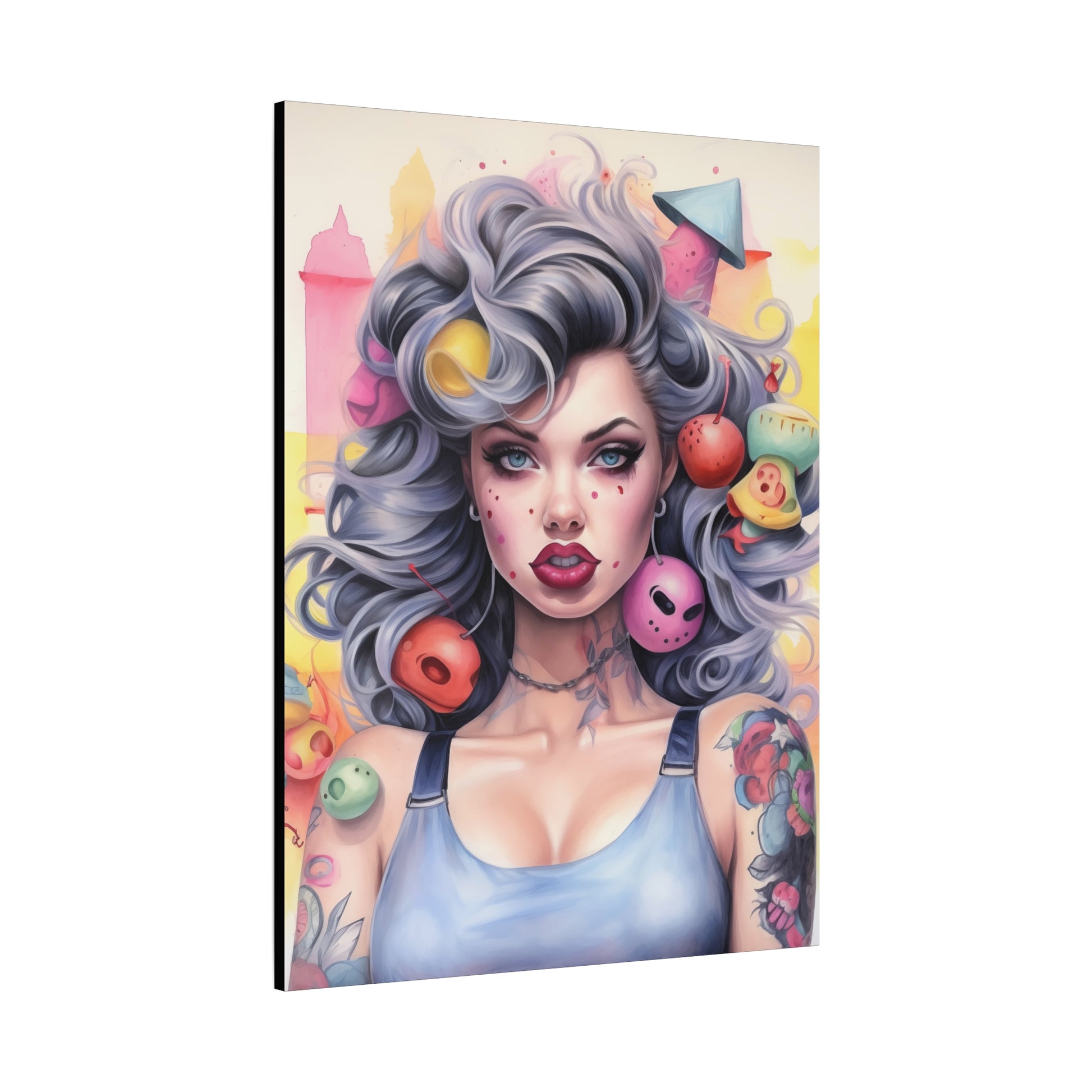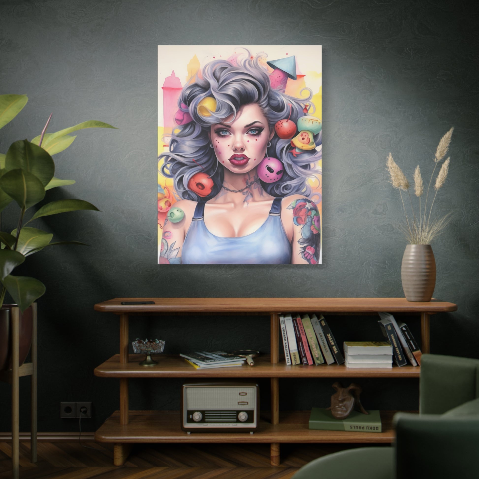 Gallery Wrapped Canvas, Tattooed Beauty, Femme Doll Pop Art Canvas – Lila