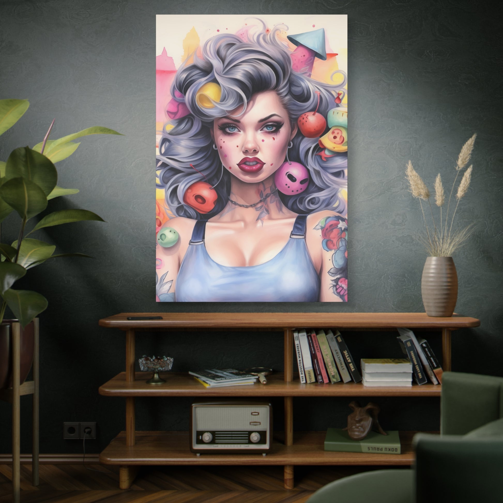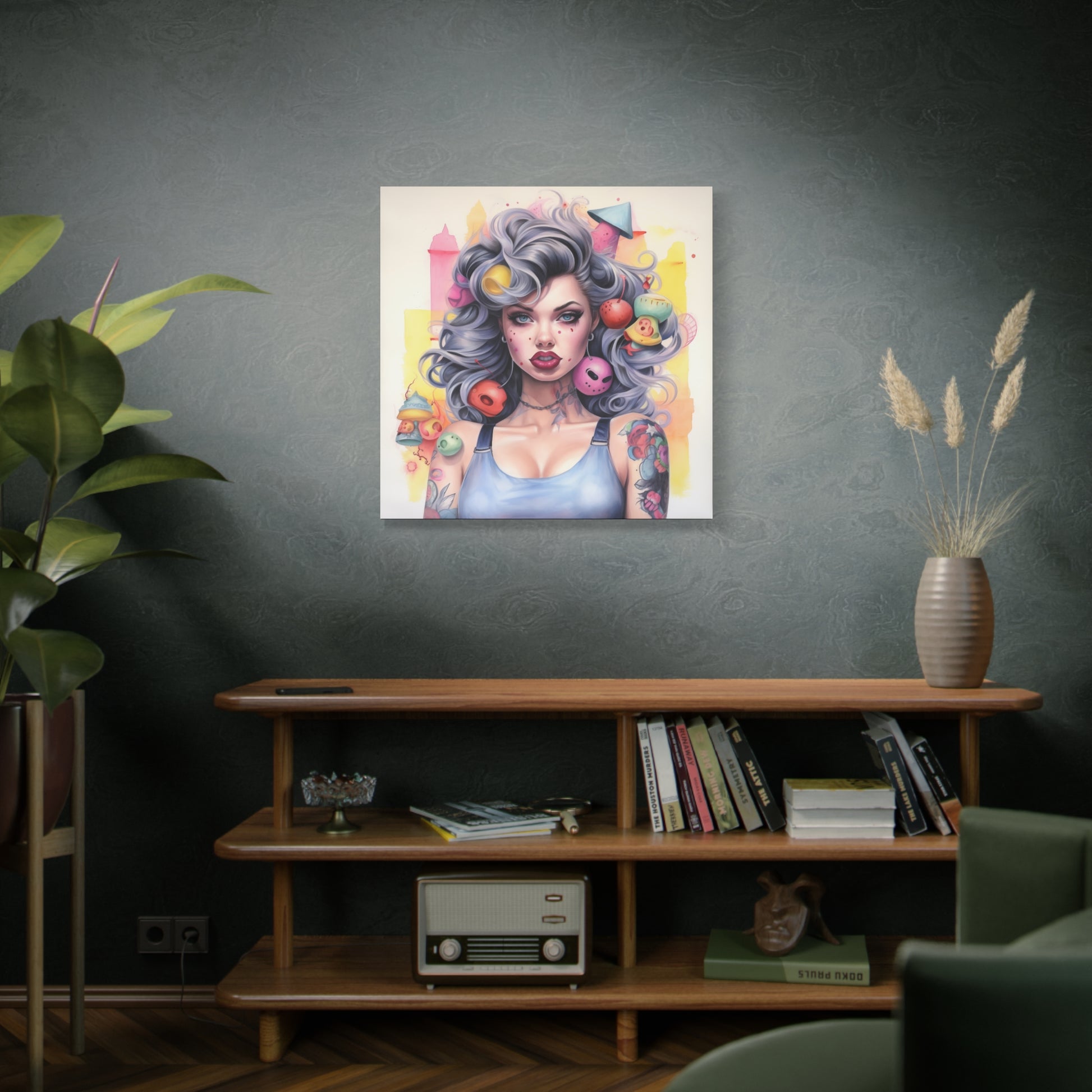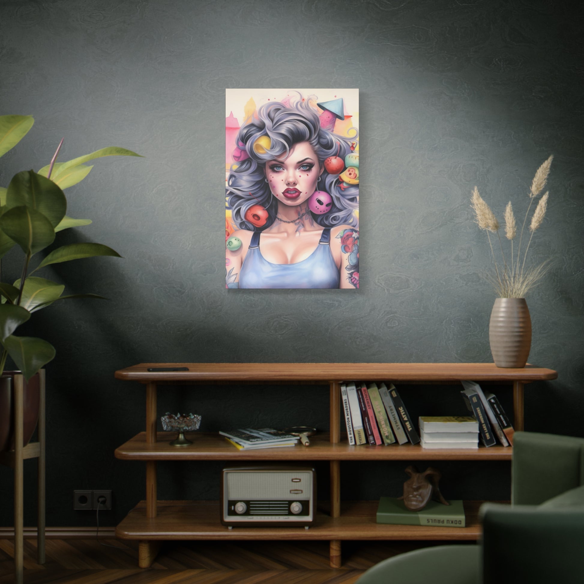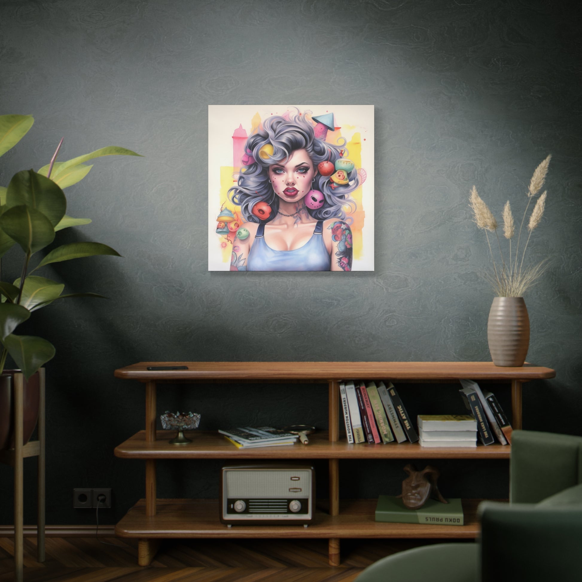Gallery Wrapped Canvas, Tattooed Beauty, Femme Doll Pop Art Canvas – Lila