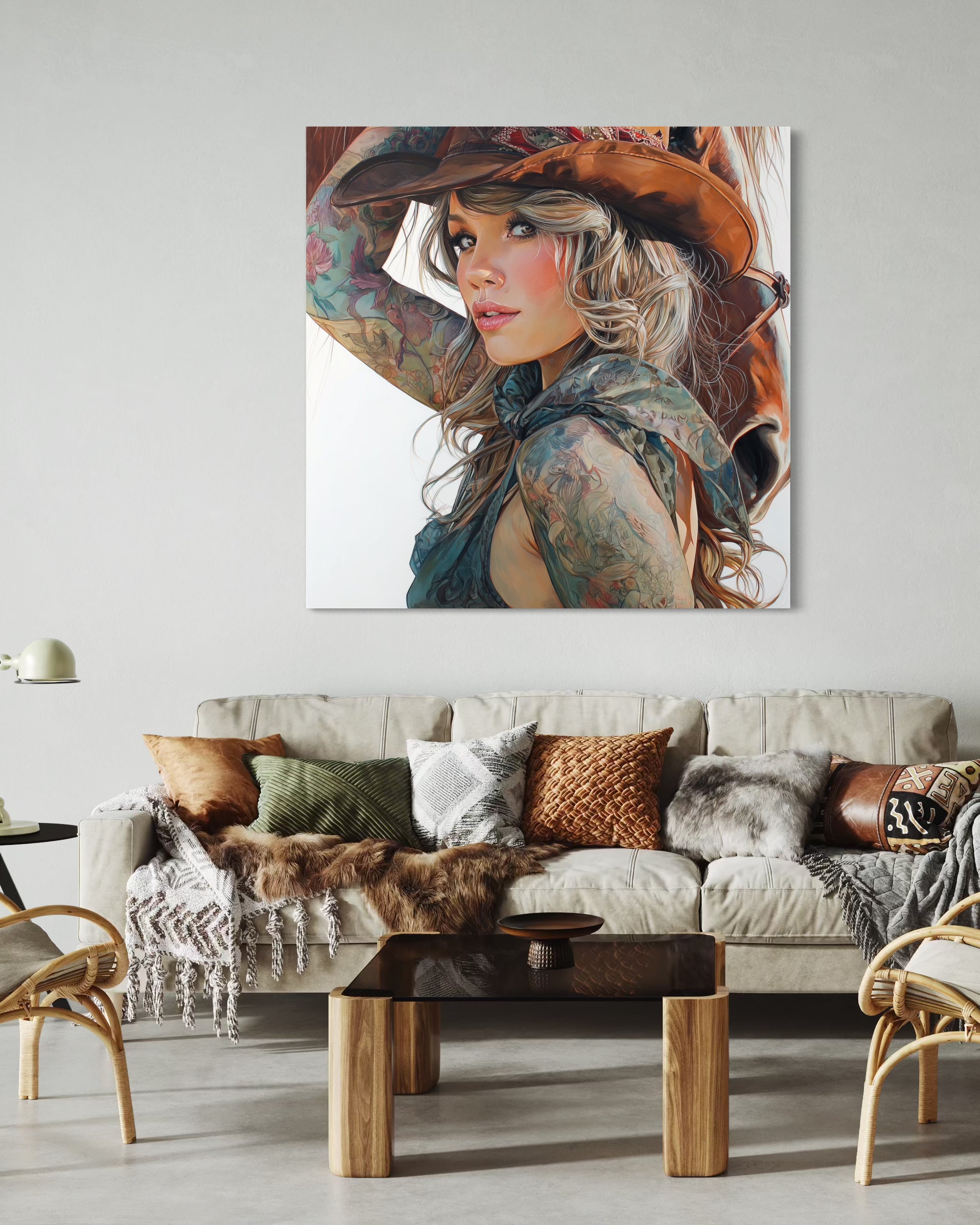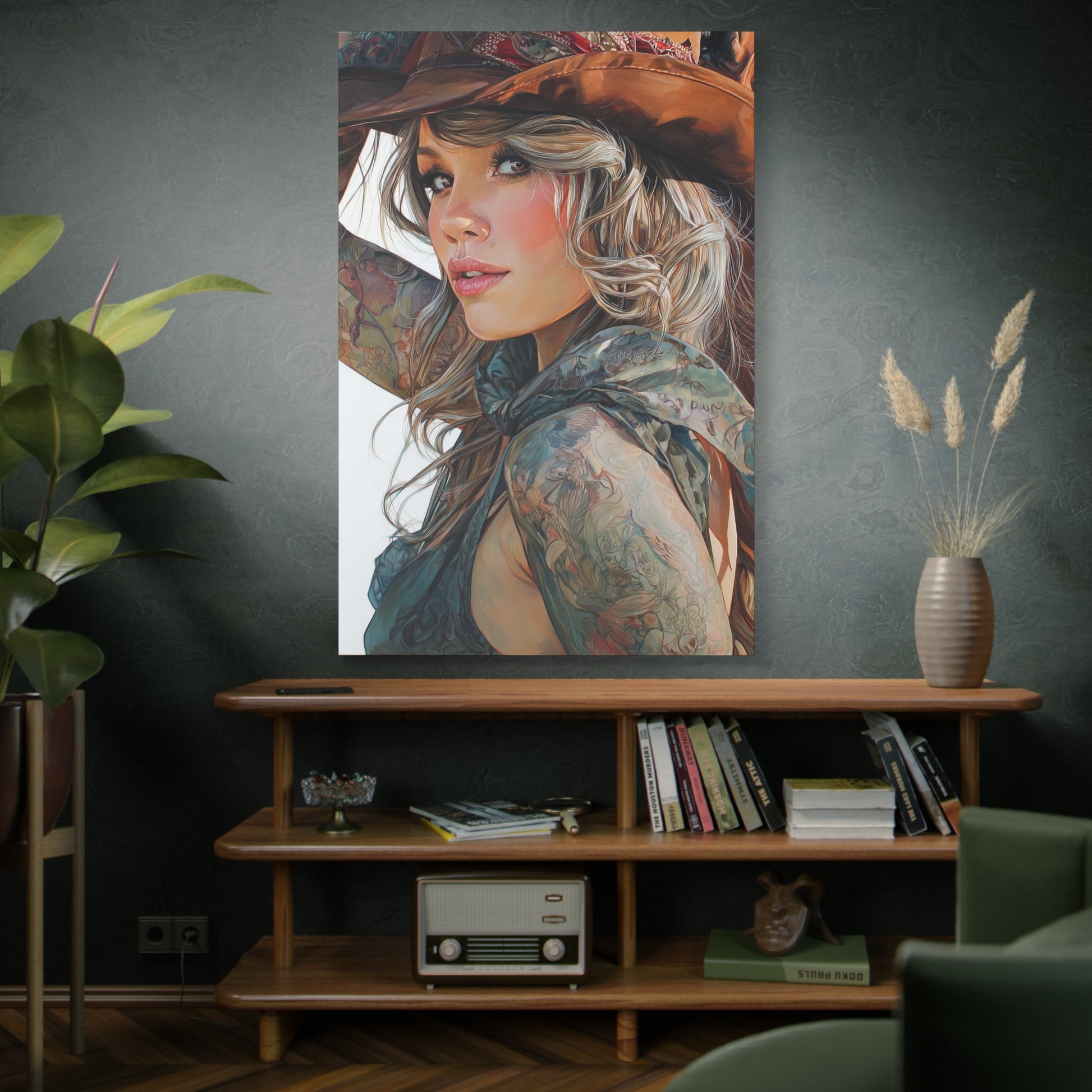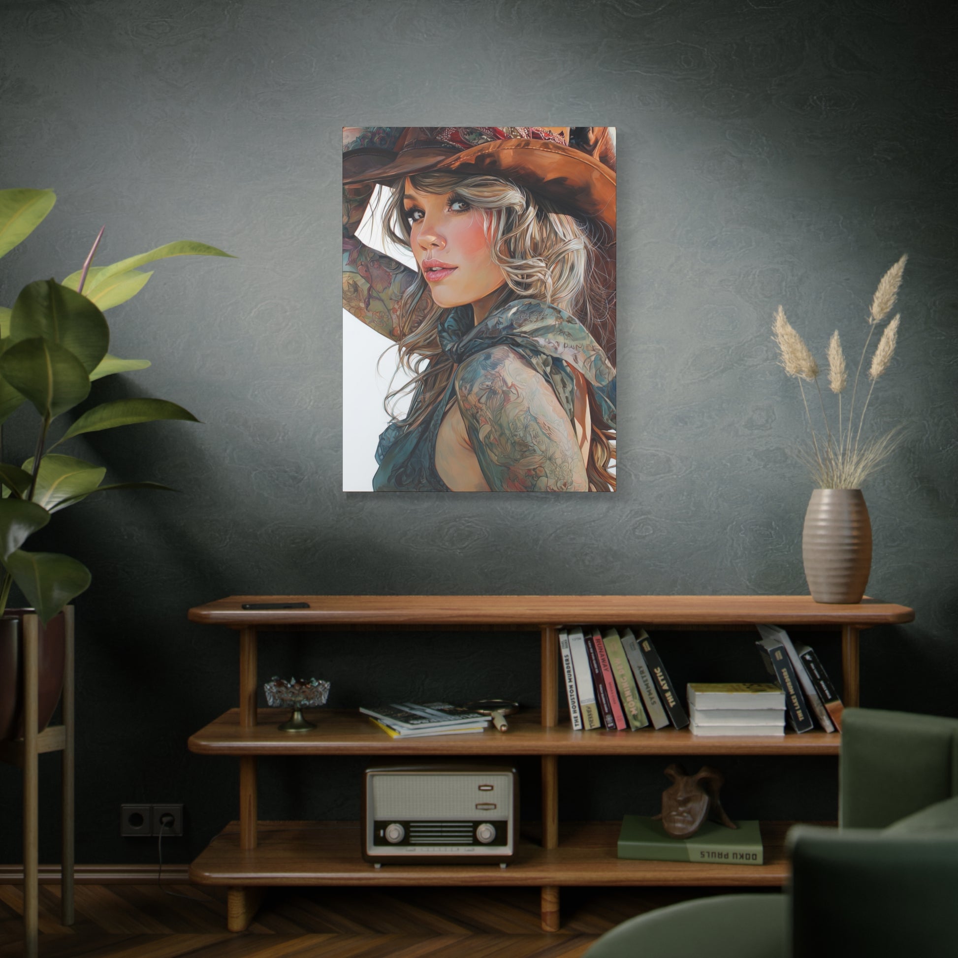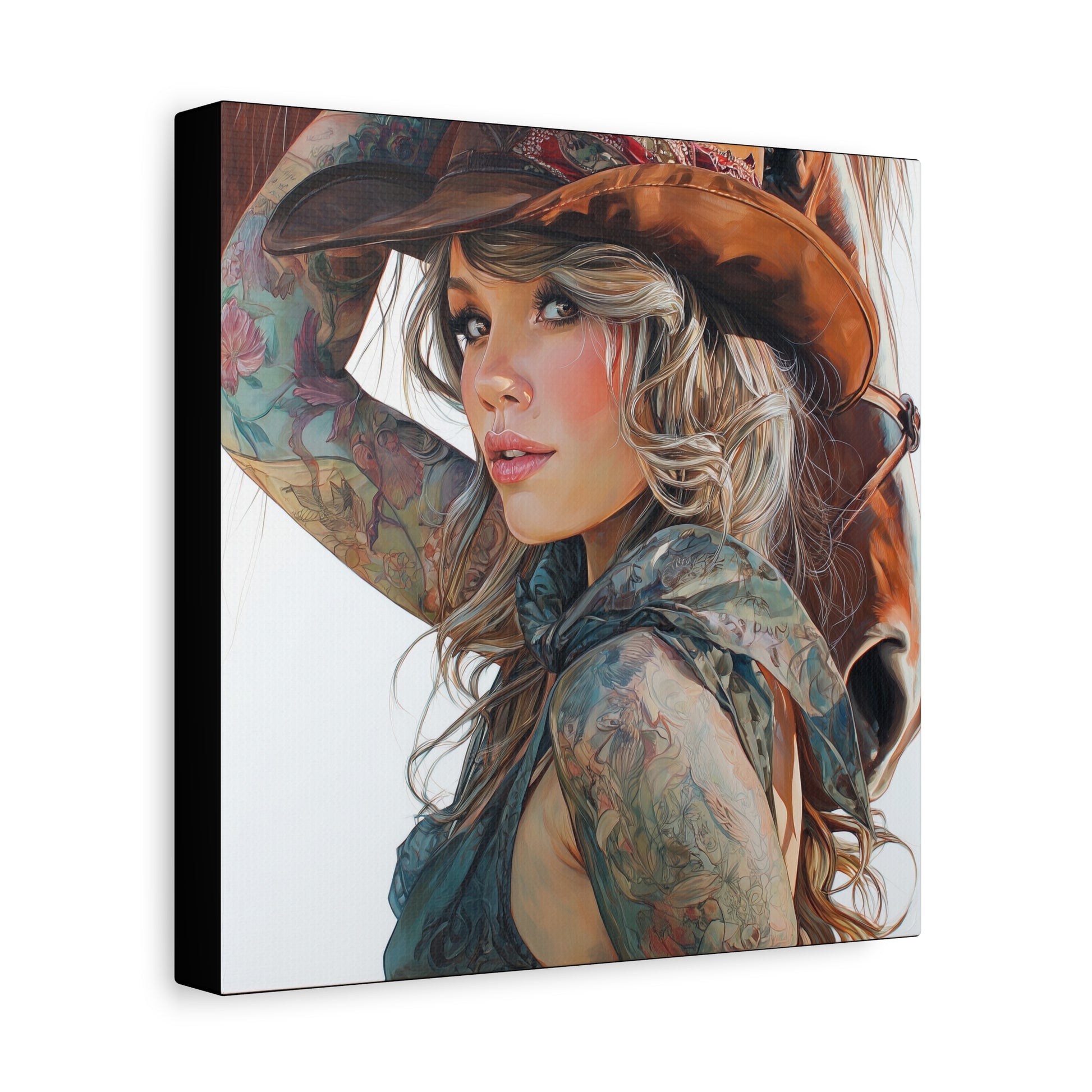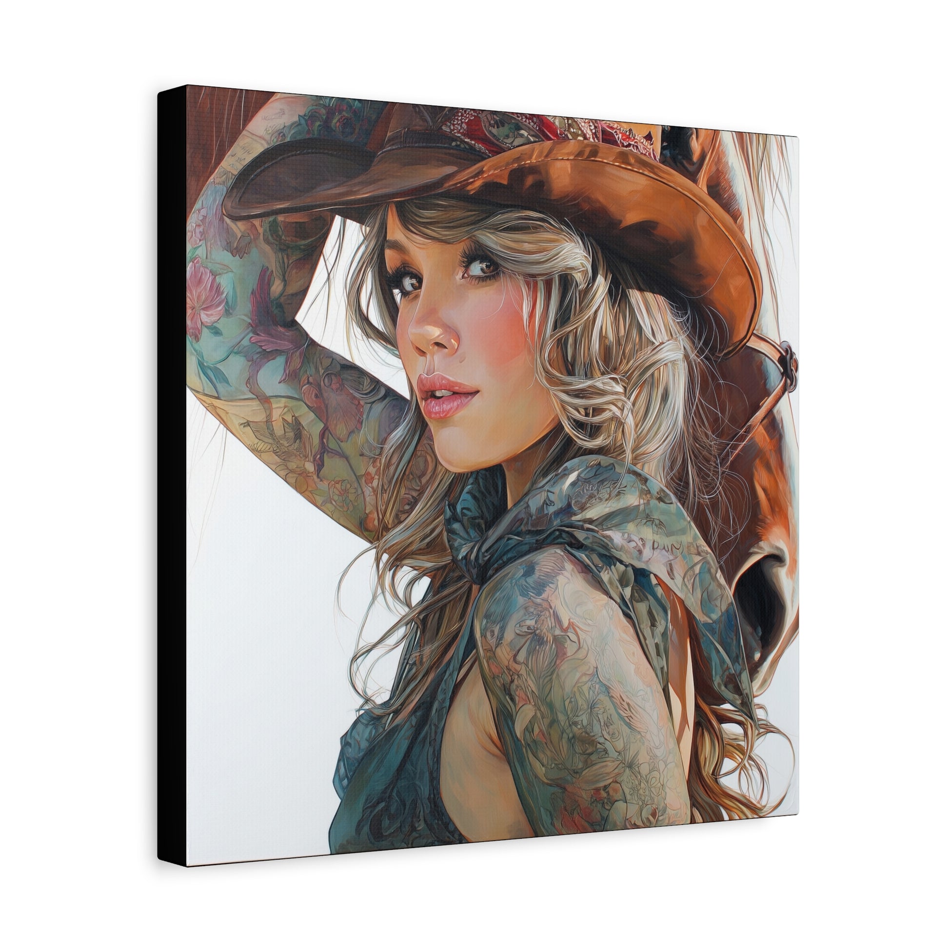 Gallery Wrapped Canvas, Wranglers and Wreckage Art Canvas, Erotic Pinup Art Canvas – Millie