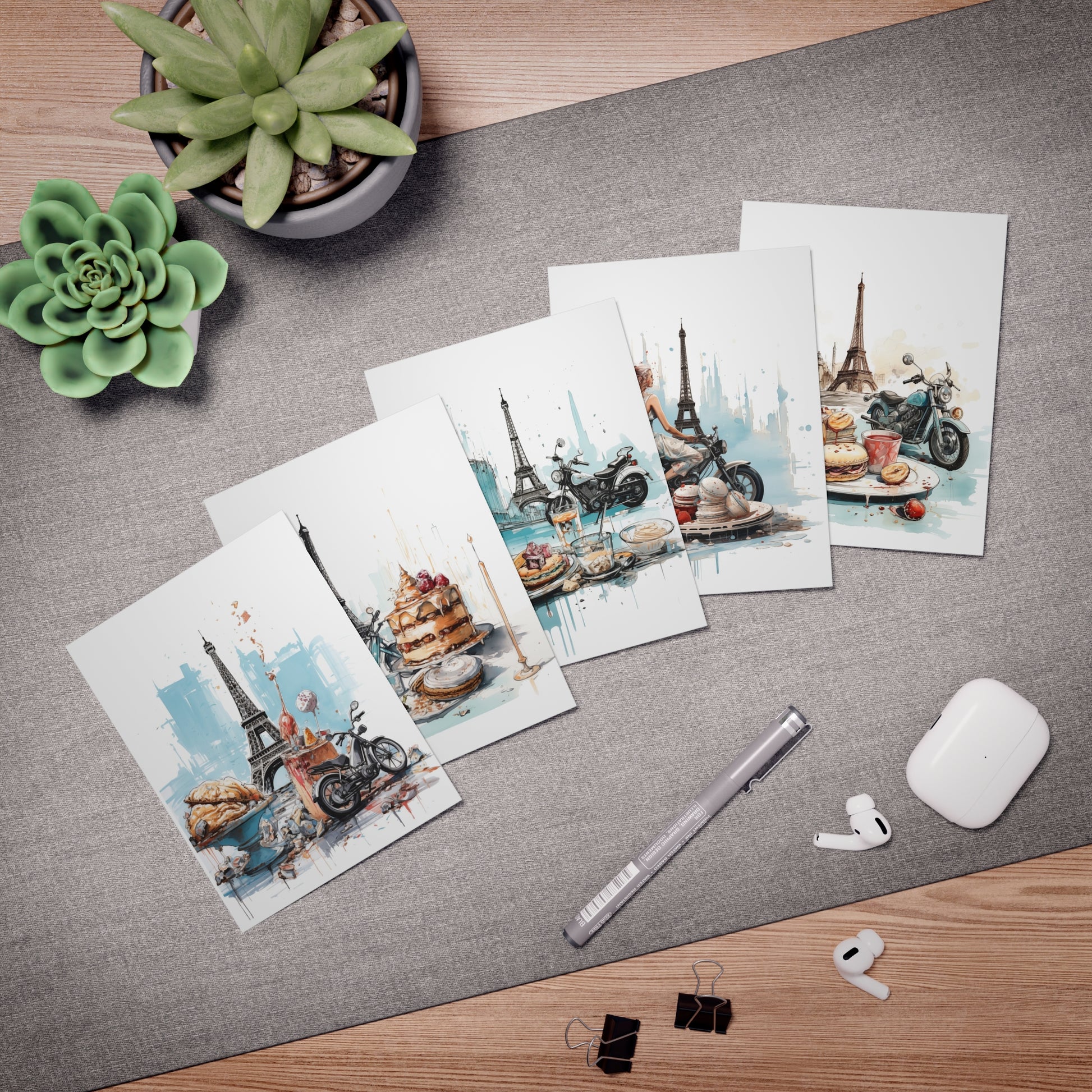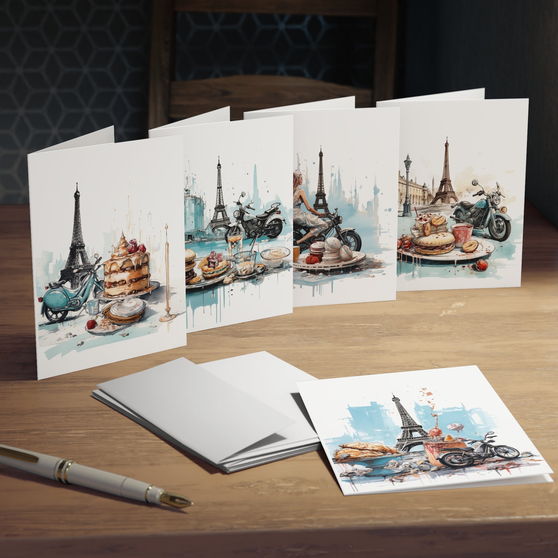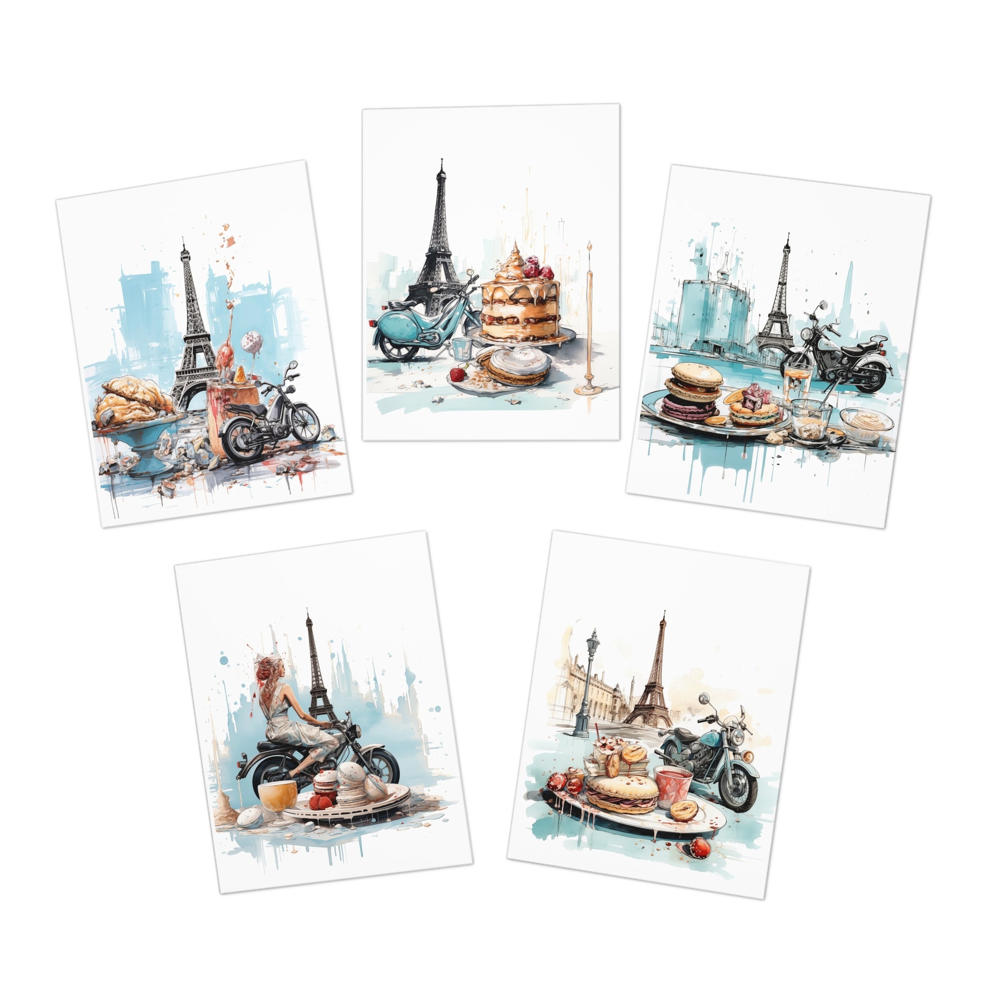 Motorcycles and Pastries in Paris - Cards Multi-Design Greeting Cards (5-Pack)